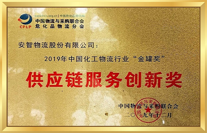 2019年12月榮獲中國物流采購聯(lián)合會?;贩謺C發(fā)的“供應(yīng)鏈服務(wù)創(chuàng)新獎”